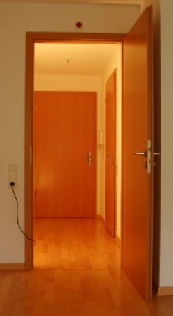 Die Diele ist vom Wohn- / Schlafraum durch eine Tür getrennt.