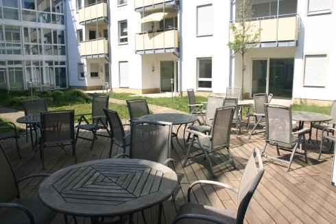 Ein Gemeinschafts- und Veranstaltungsraum (mit Internetzugang) und eine herrliche Sonnenterrasse mit Holzfußboden im begrünten Innenhof mit einem kleinen Teich runden das auch hohen Ansprüchen gerecht werdende Angebot der Senioren-Residenz Parkstraße ab.