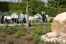 die Sonnenterrasse im Innenhof lädt zum geselligen Beisammensein ein